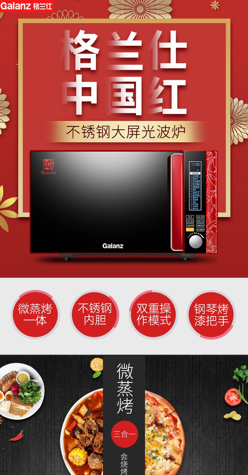 グランツ(Galanz)フラットパネル電子レンジー中国レッドストーン光電子レンジ23リット大容量イインテル予約微蒸焼一体機中国紅G 80 F 23 3 DCG-F 7(R 0)