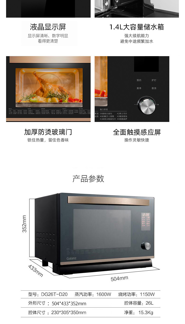 グラッセ(Galanz)蒸し焼一体機DG 26 T-D 20リット沈下式発熱盤家庭用ステアリング内胆(線下同項)