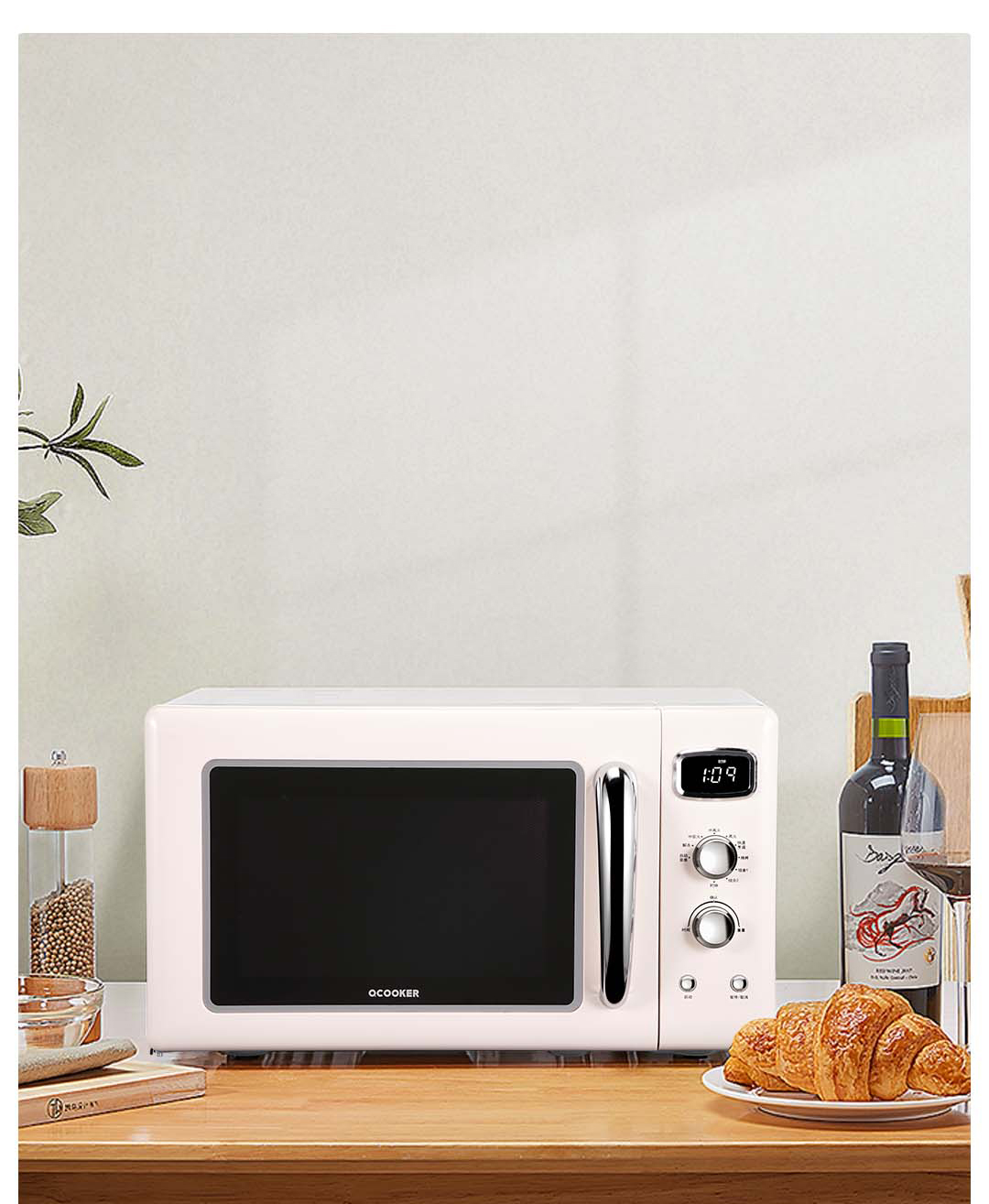サーククシエル(QCOOKER)復古家庭用光波炉オーブ一体機23リット大容量回転出ディスク式光波炉光波焼炉知能解冻復古白(23 L回転盤式微焼合一)