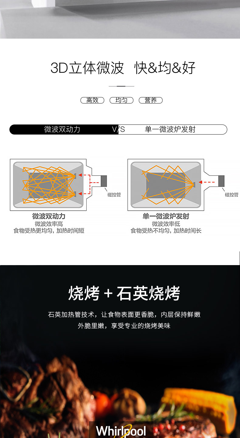 恵而浦(Whirlpool)多機能電子レンジー家庭用23 Lミナミ大回旋ディスク蒸し器オーブ一体機光波炉MAX 39/NY