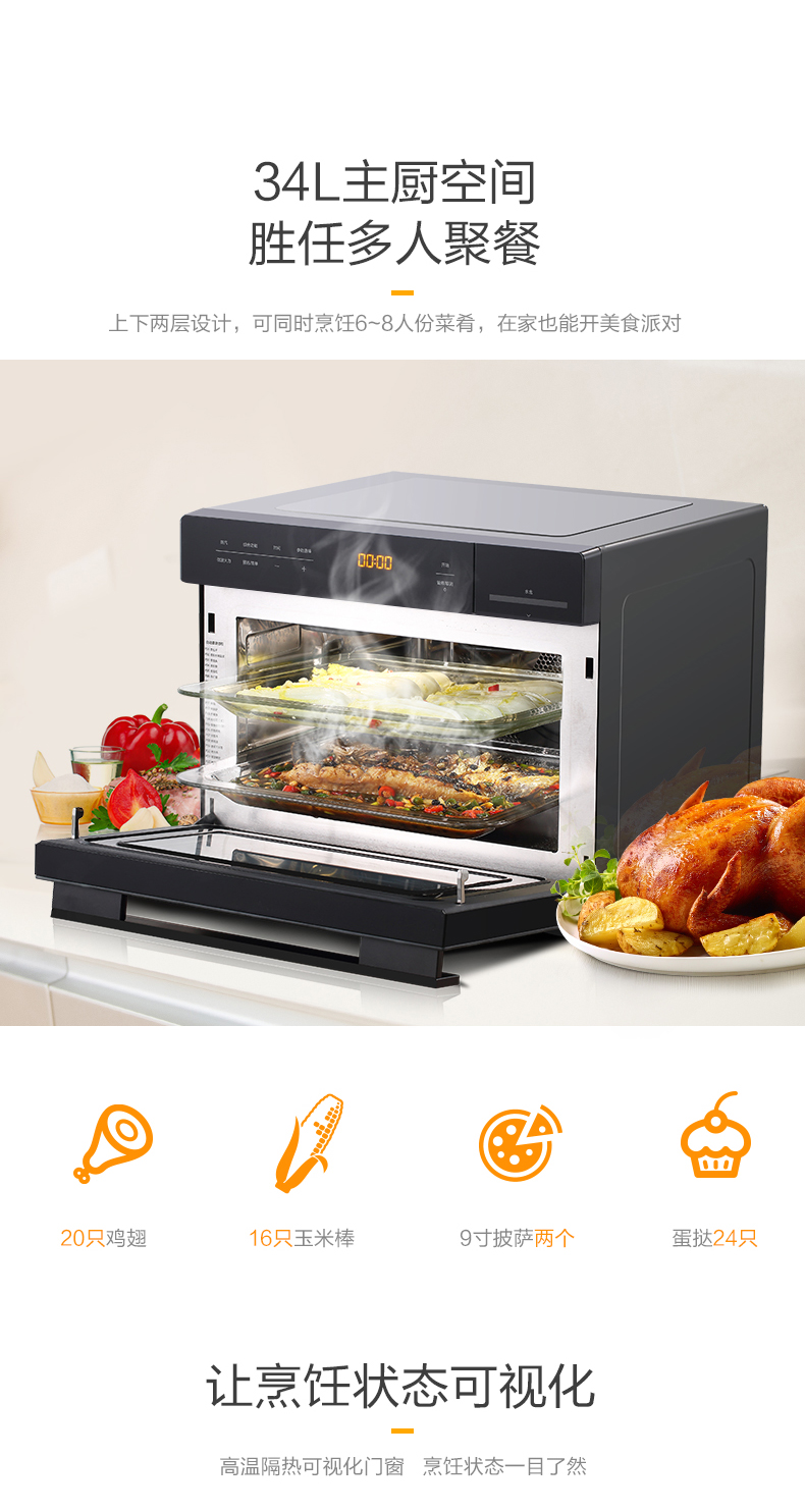 美的电子レンジ微蒸烧一体机家庭用34 L大容量デコセットに蒸らし器の电子レンジを埋め込みました。