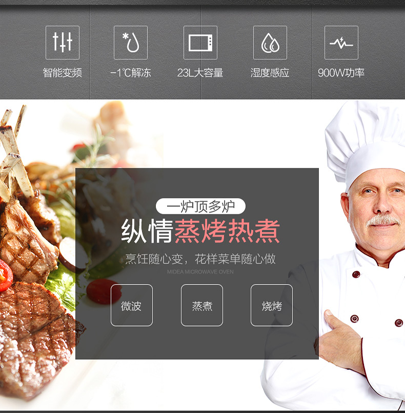 美的(Midea)23 L蒸立方インテトリー家庭用コロンバーエレクトリック923 MF 7-NRH多機能一体湿度センセイとオーセンをセットする。