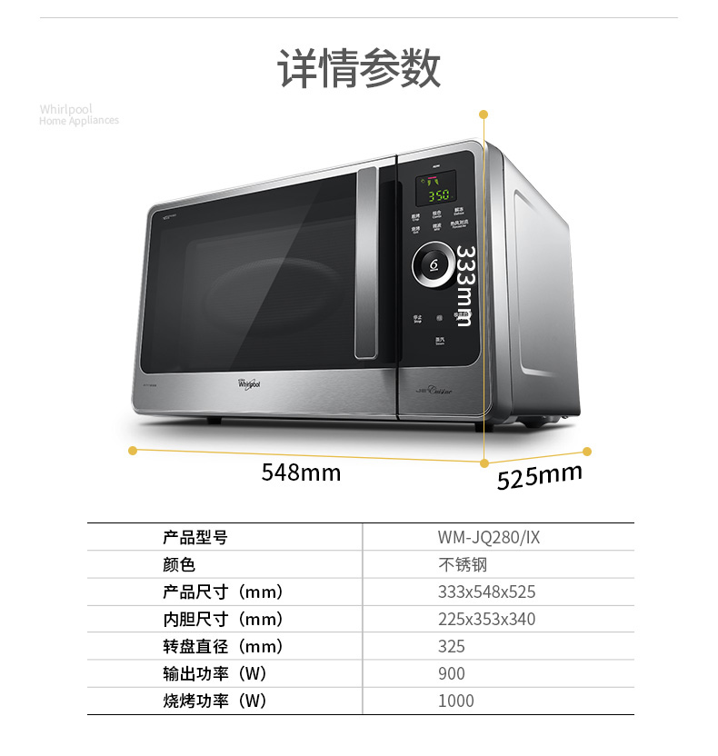 恵而浦(Whirlpool)電子レンジーWM-JQ 280/IXシーケンス・センス重さ誘導熱風対流蒸し焼一体機27 L